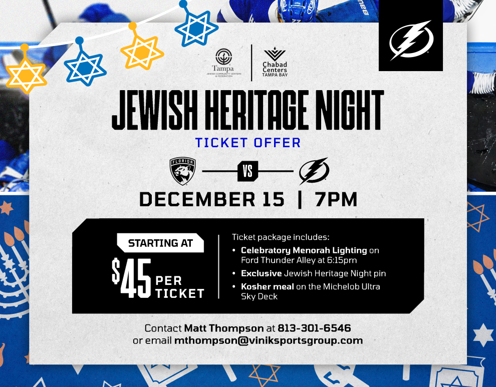 Join us in Celebrating Chanukah while cheering on the Tampa Bay Lightning as they battle it out against the Florida Panthers, winner of the 2024 and 2025 Stanley Cup!