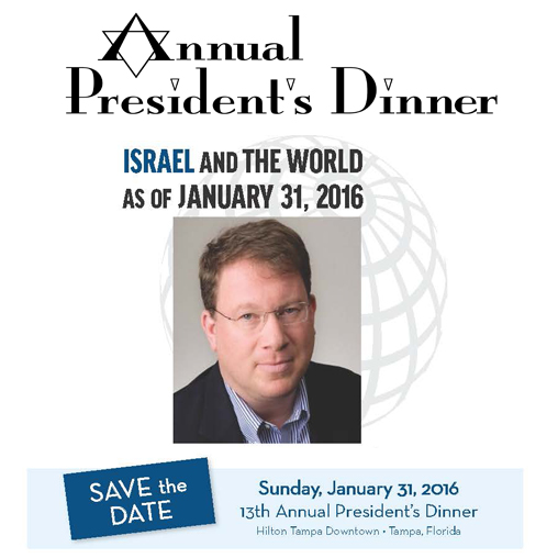 The Annual President’s Dinner is an opportunity to get together to celebrate our Jewish community, its growth and successes. This event is evidence of our community’s shared commitment to carrying our community forward. This is an event with a tradition of bringing world leaders and national recognized speakers to address our community.