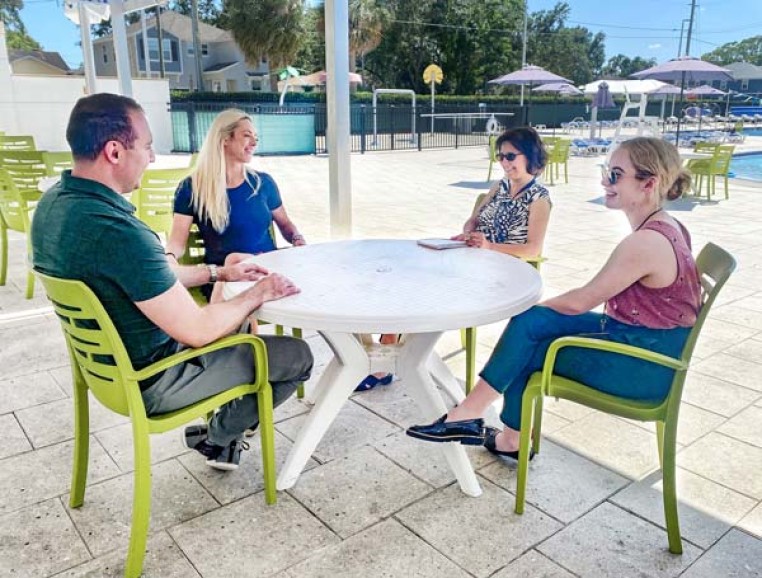 Lisa Robbins, Director of Engagement for the Tampa JCCs & Federation and Noa Friedman, Program Coordinator, met recently with David and Caroline Shulim, newcomers to the Tampa area who are seeking Shabbat dinner connections in the community. Dr. Debbie Hoffman facilitated an introduction to the couple.