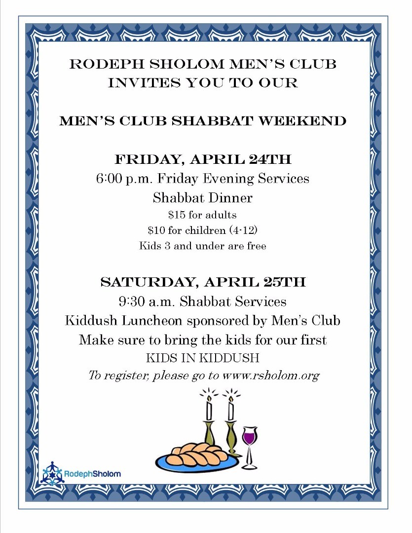 Join Men's Club as they sponsor a Shabbat dinner following services.