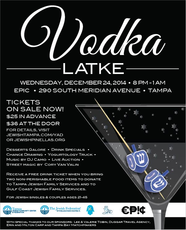 Join us for our biggest annual fundraiser and party of the year! Mingling, schmoozing, high-energy cocktail conversations and more! For Jewish singles & couples, ages 21-45. Hosted by the Young Adult Divisions of the Tampa JCC & Federation and the Jewish Federation of Pinellas & Pasco Counties.
