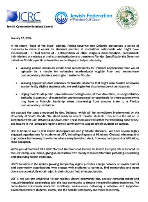 Fully tax deductible donations to support the efforts of the JCRC can be made to the Tampa JCC's and Federation.
